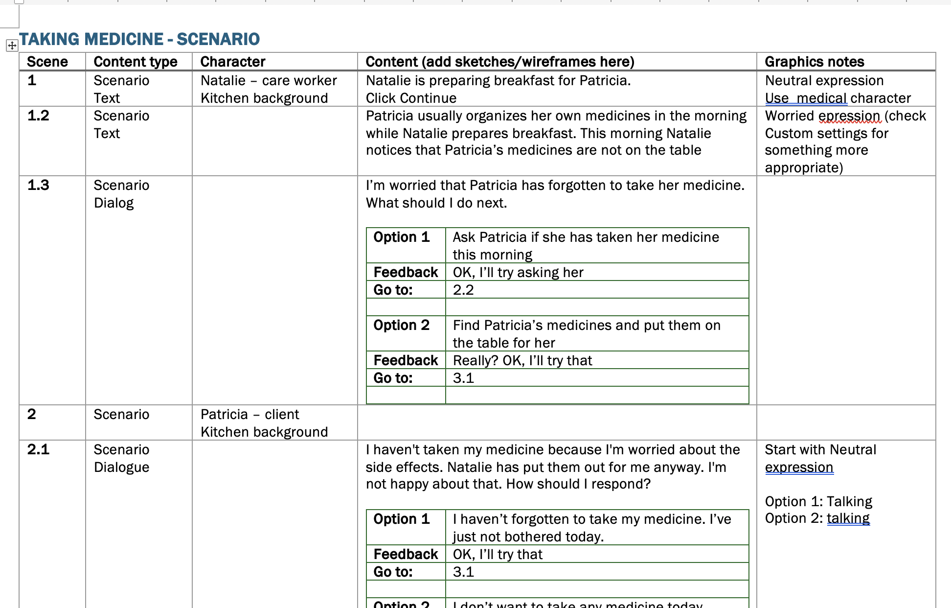 I created a simple safeguarding scenario and storyboarded it out using Word
